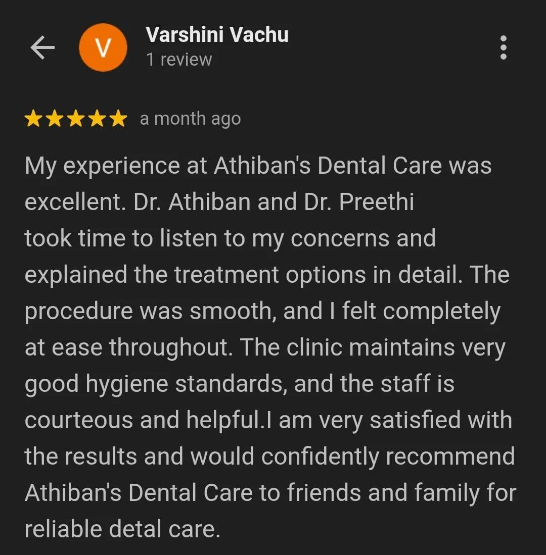 Driven by a commitment to excellence, I’ve helped restore confidence in 700+ patients and performed hundreds of successful implant procedures. At Athiban’s Dental Care, our approach blends the latest digital technology with genuine empathy—ensuring each patient feels safe, understood, and satisfied.