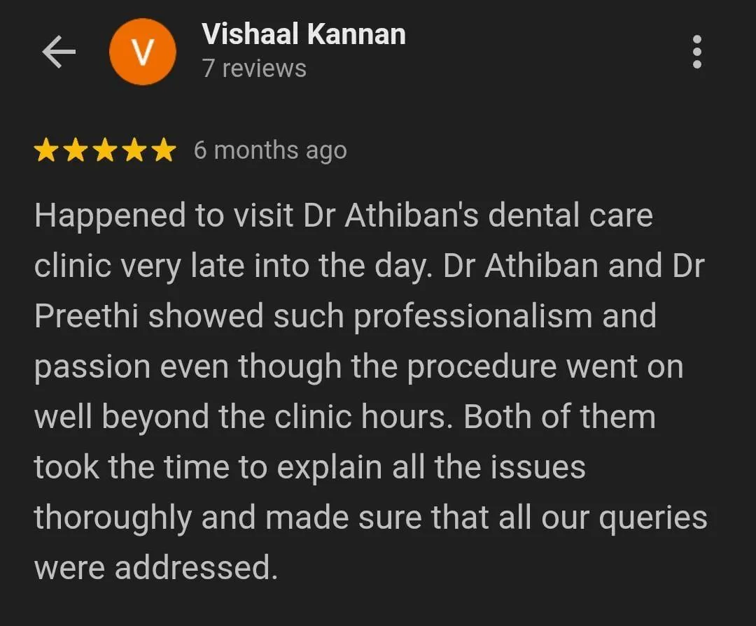 I’m Dr. Athiban Raj J, the dedicated founder of Athiban’s Dental Care, serving smiles in Tondairpet,chennai . With a passion for creating lasting transformations, I bring over 9 years of expertise in advanced dentistry, specializing in dental implants and root canal treatments.